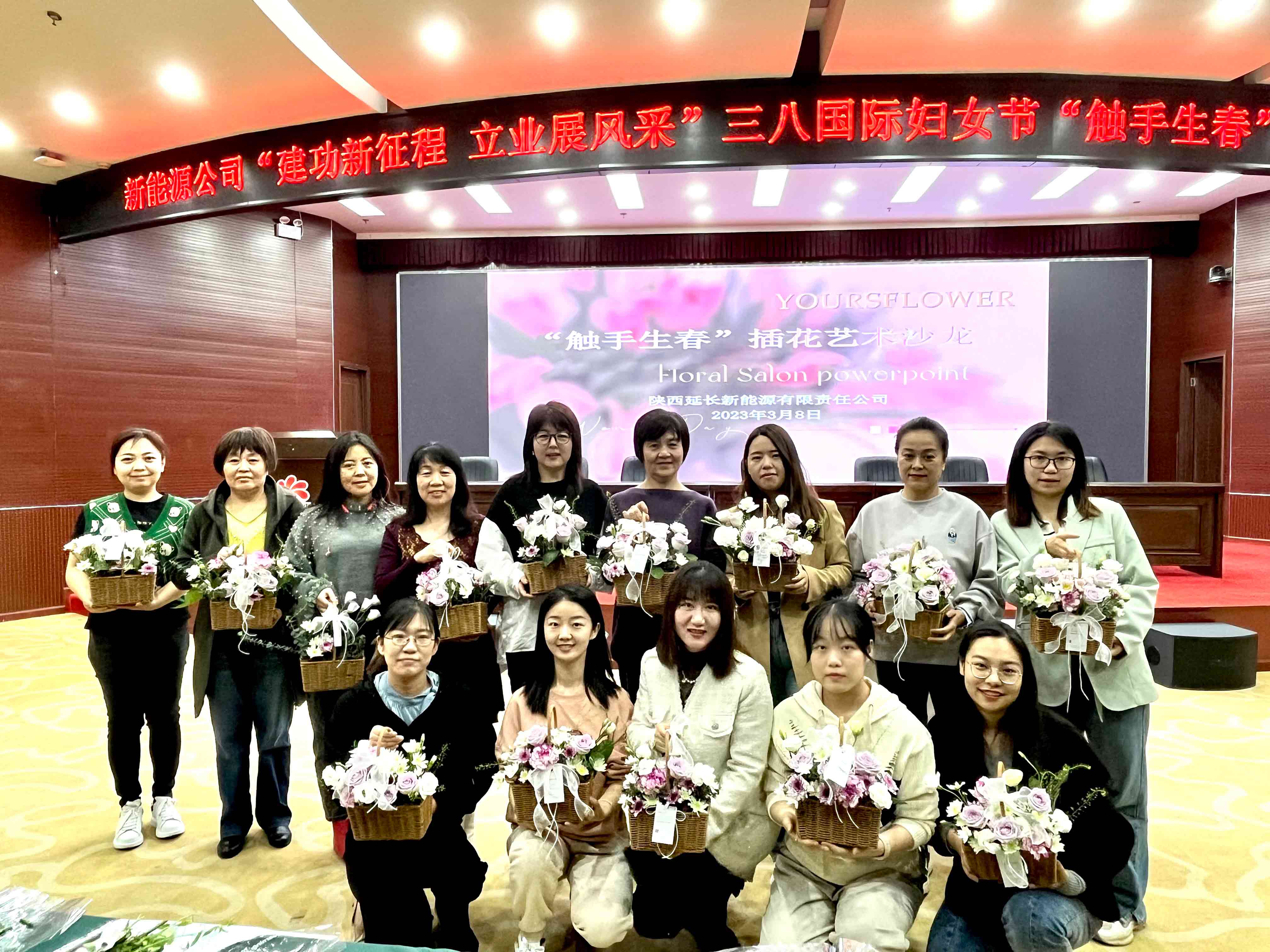 3月8日上午,新能源公司开展三八妇女节系列活动之“触手生春”插花沙龙活动,公司全体女职工参加。活动